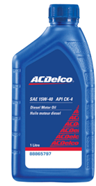 ACDelco Diesel Motor Oil (15W-40) is an advanced, synthetic blend, diesel engine oil that helps extend engine life, meets General Motors requirements and delivers high performance in both on and off-highway applications. Fully backward compatible, ACDelco 15W-40 delivers exceptional performance in both newer and older General Motors heavy duty engine designs.